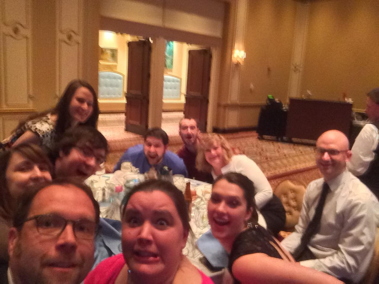 We serve dinner after an hour of cocktails and mingling. The food was fantastic. I had salmon with the most wonderful glaze. We were fortunate to have a wonderful MC, our own managing editor, Marshall King. He started with a joke and a selfie reenactment inspired by Ellen.